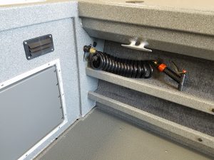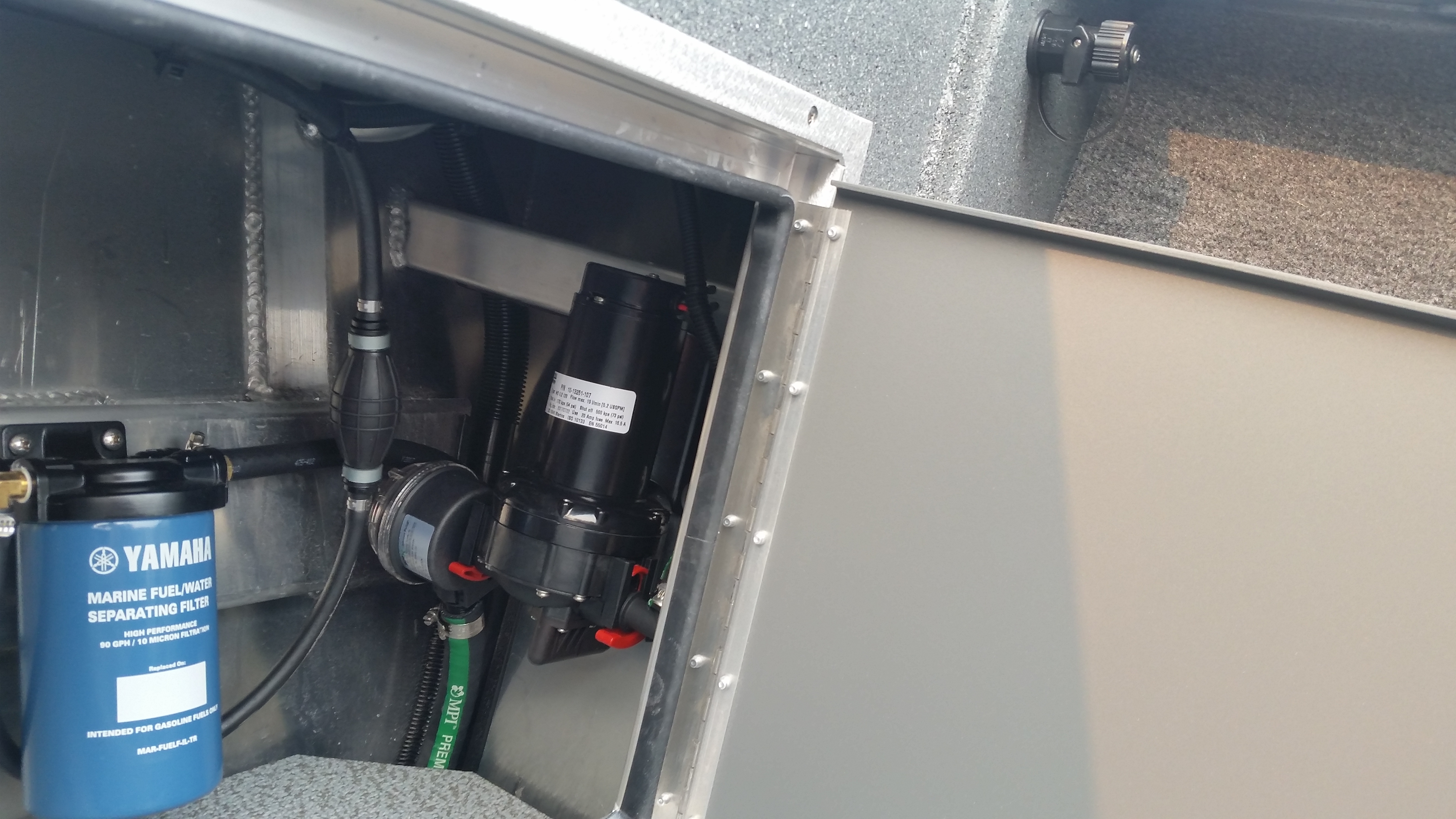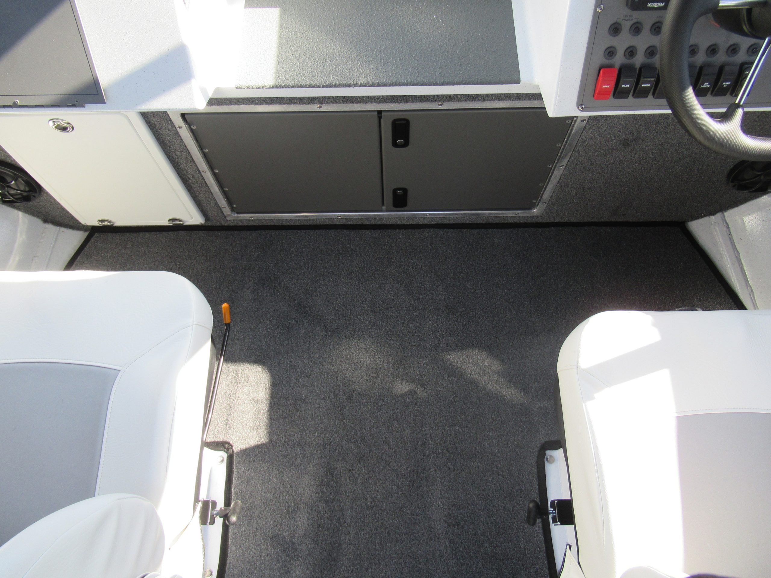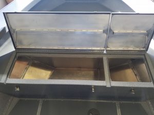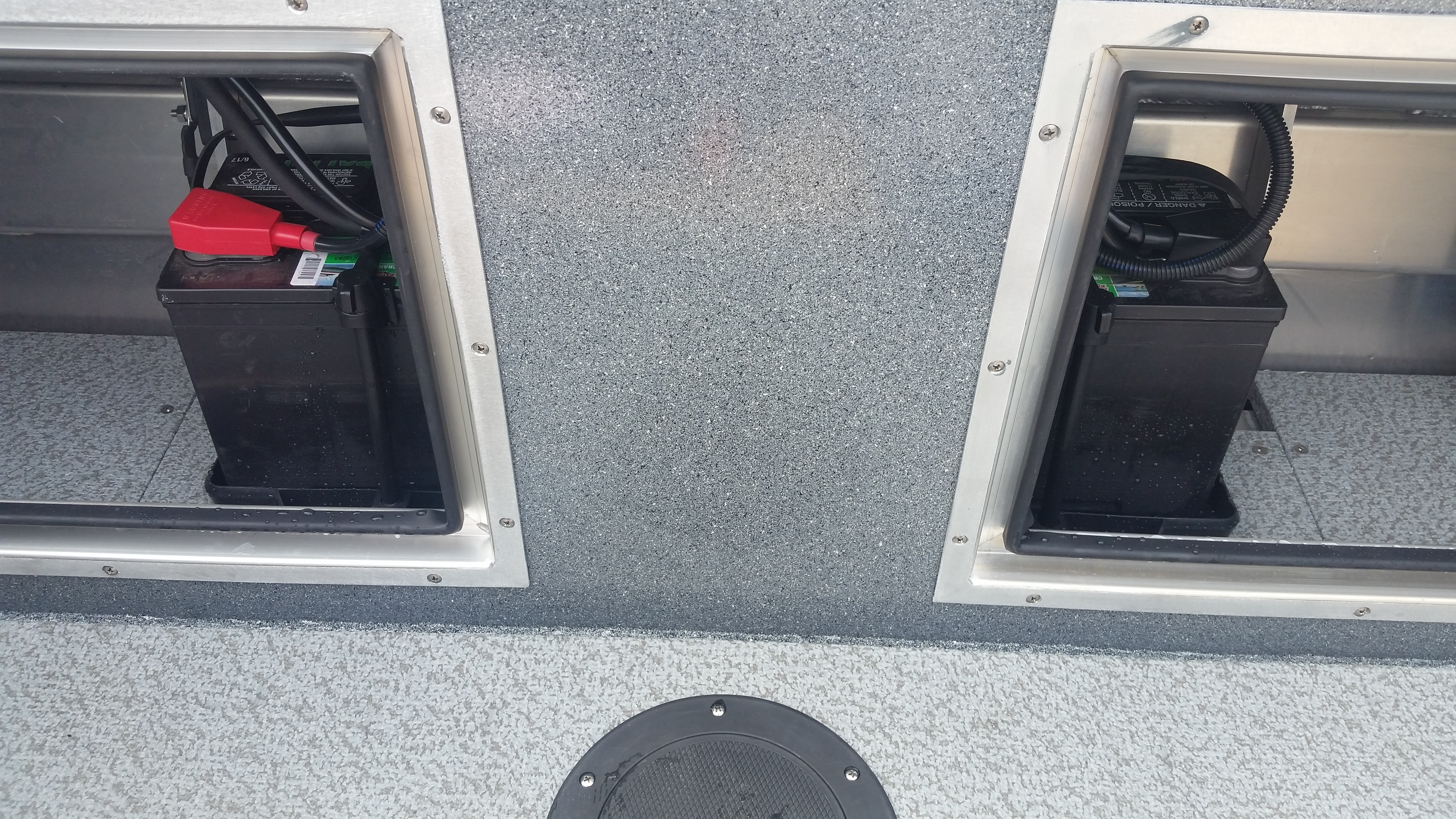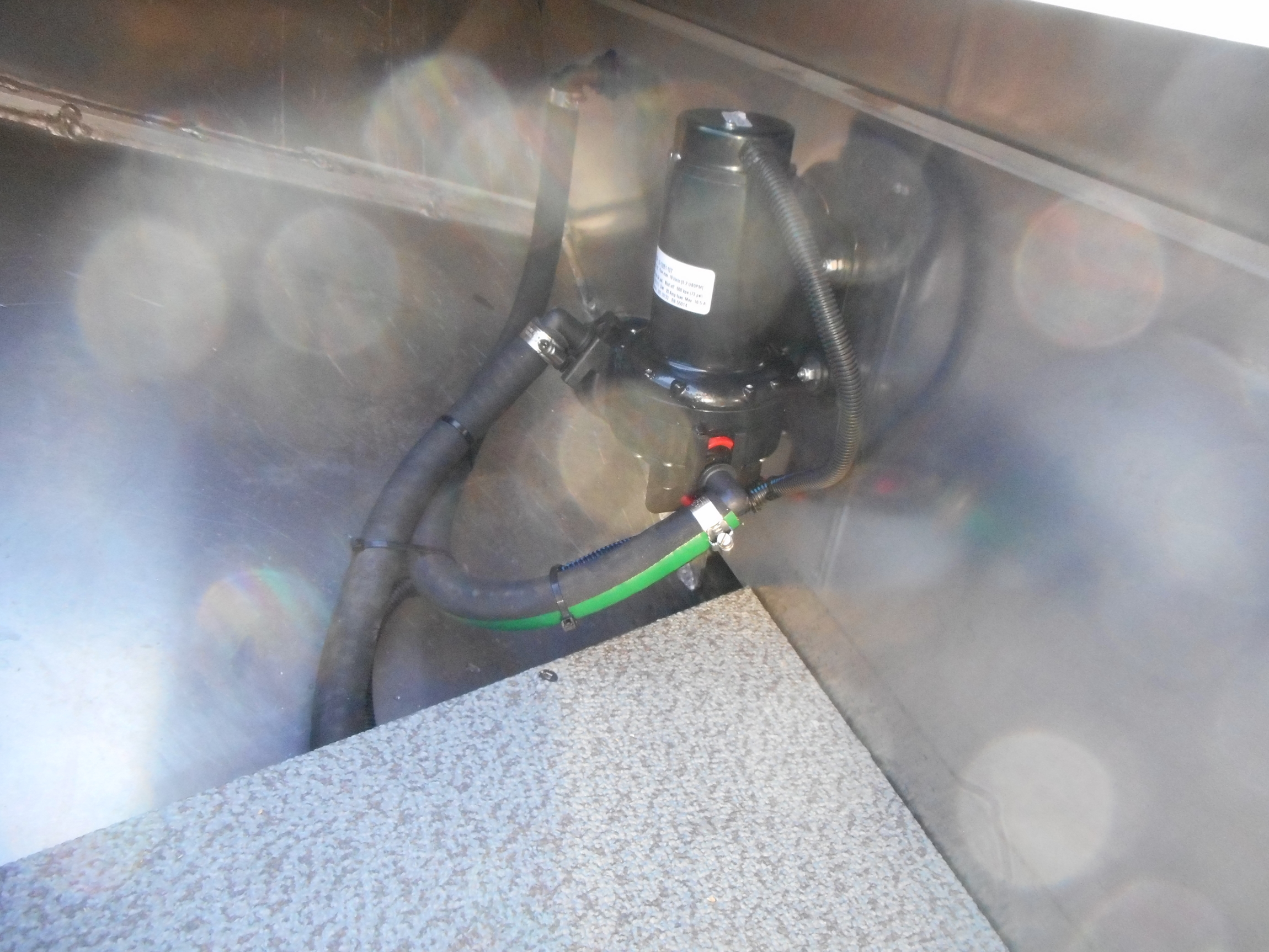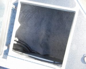 - Fish box welded in floor, hinged door, with drain and valve