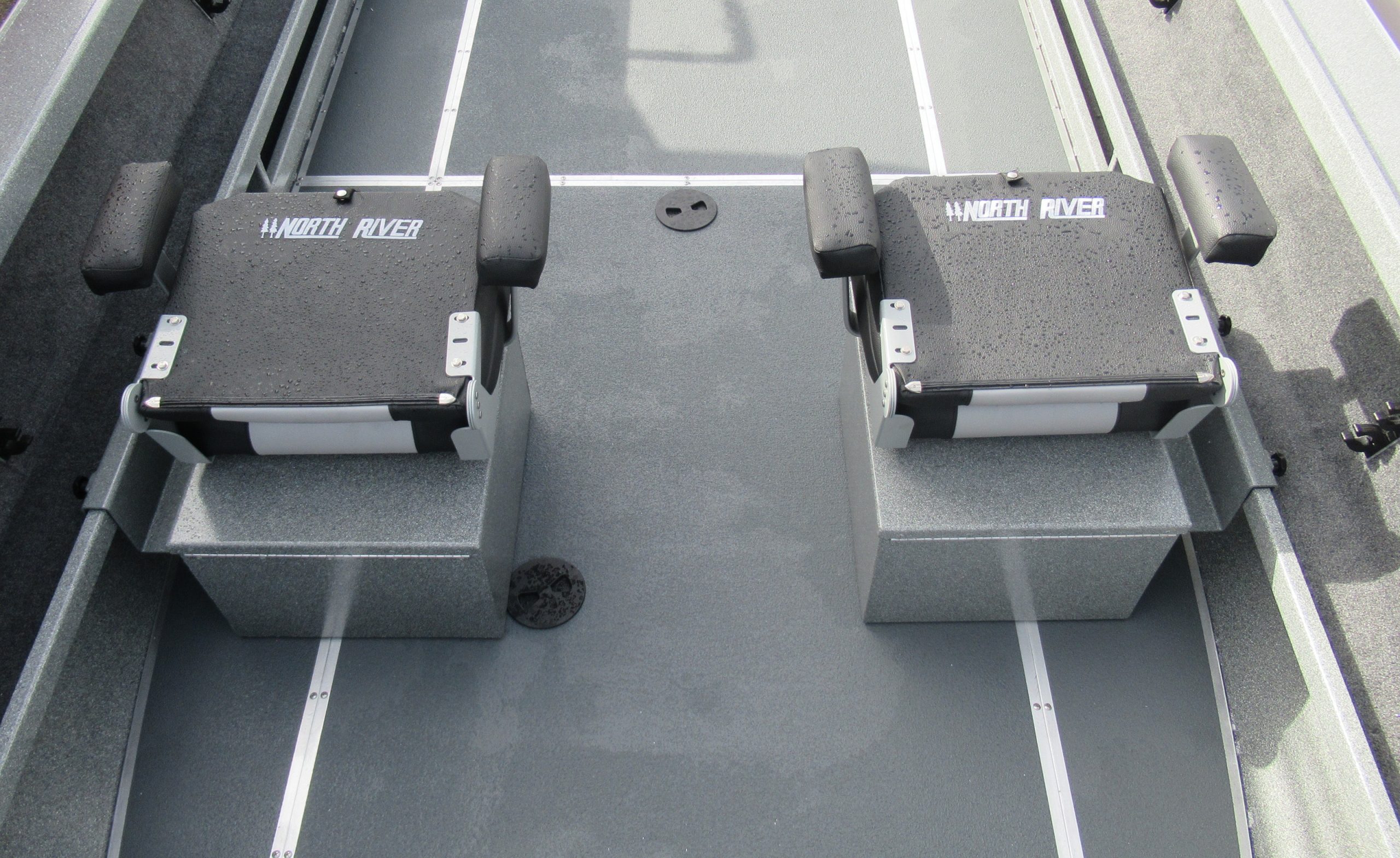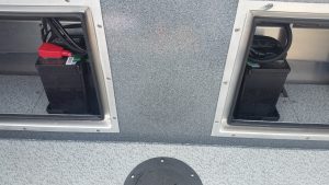 - Split fish box with dual lid (70 port / 30 starboard)